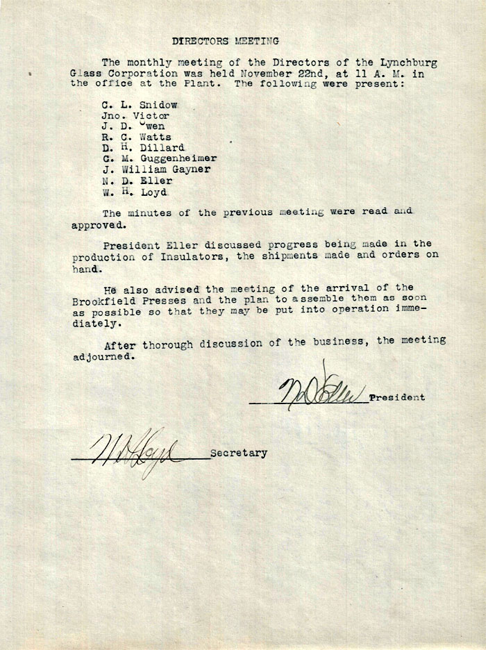 Home > Lynchburg Glass >Historical Archive > Lynchburg Glass Corporation Minutes > this page