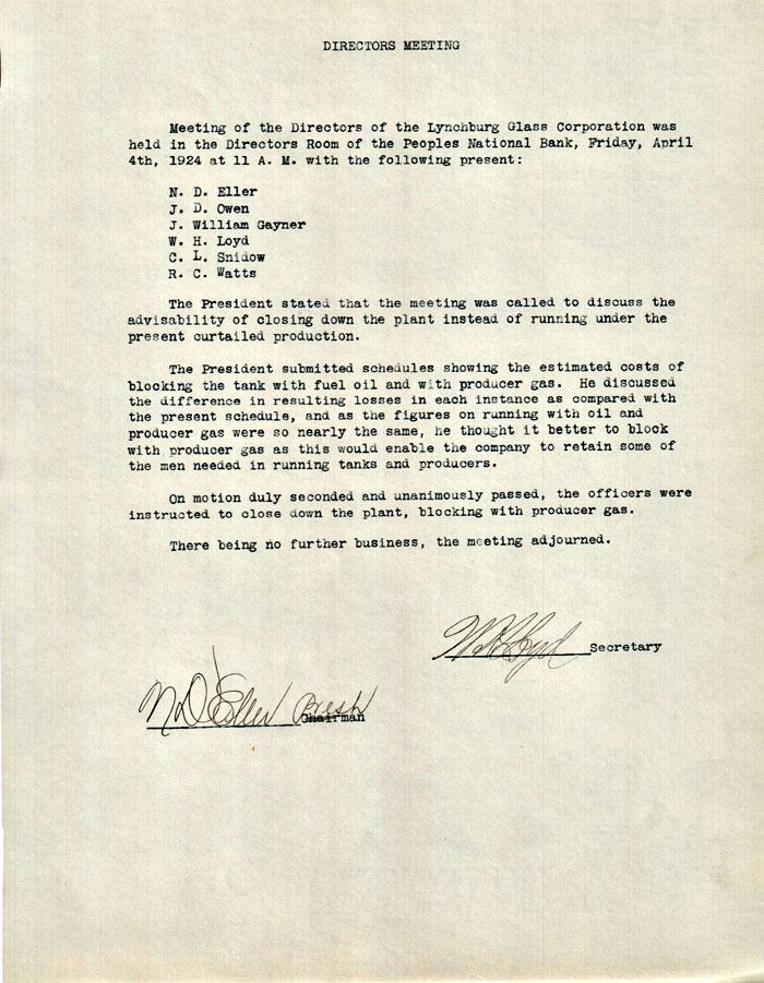Home > Lynchburg Glass >Historical Archive > Lynchburg Glass Corporation Minutes > this page