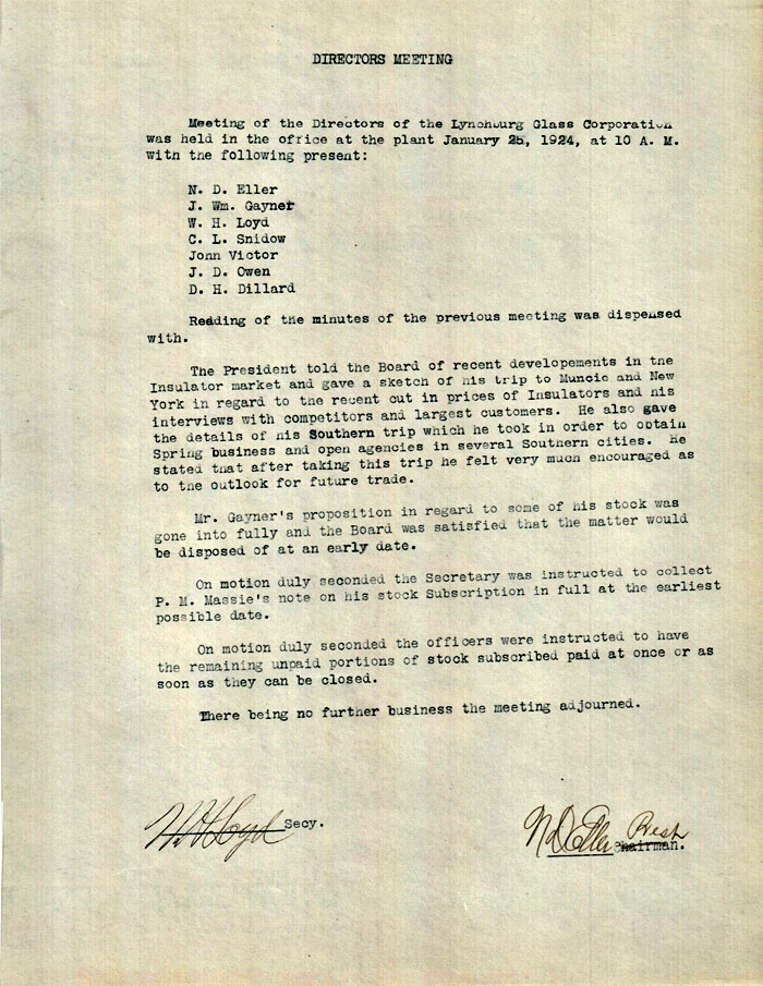 Home > Lynchburg Glass >Historical Archive > Lynchburg Glass Corporation Minutes > this page