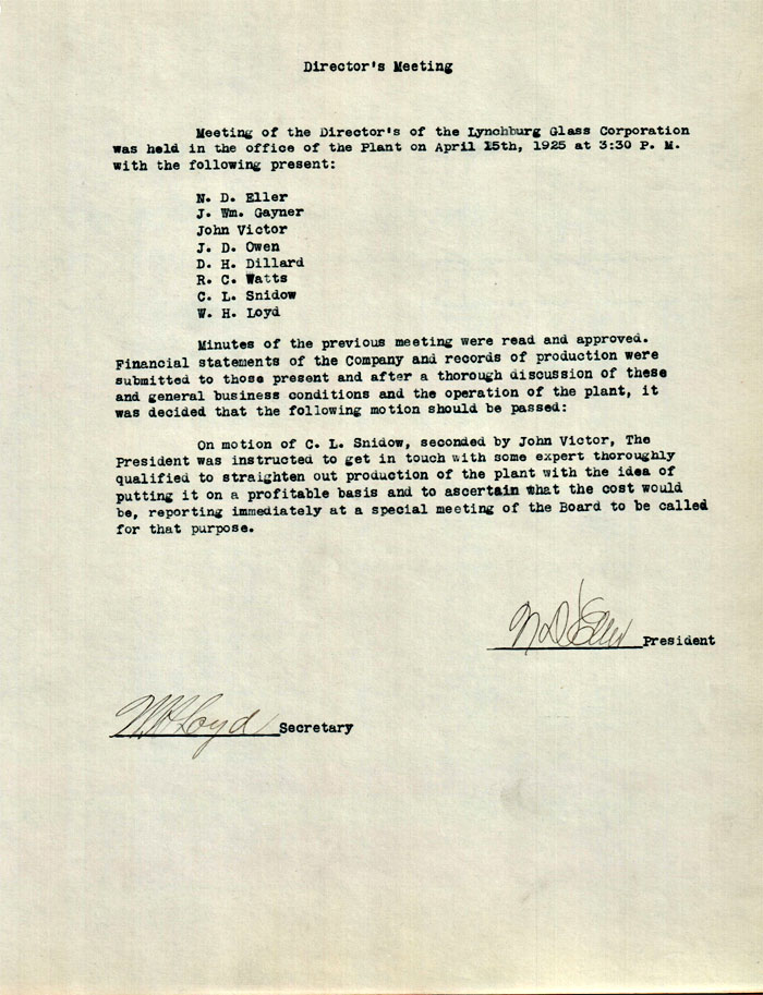 Home > Lynchburg Glass >Historical Archive > Lynchburg Glass Corporation Minutes > this page