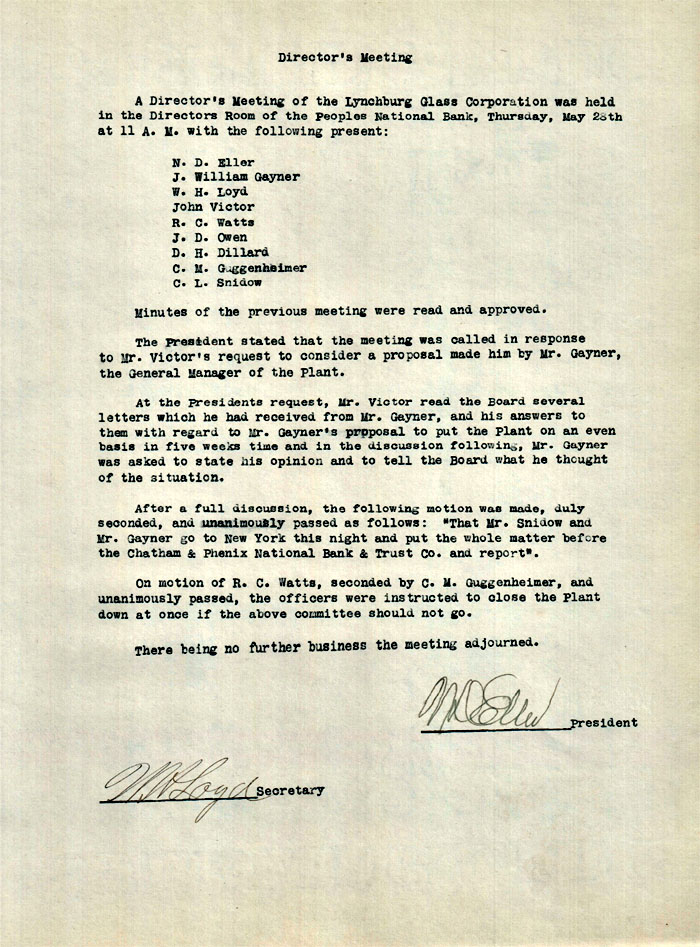 Home > Lynchburg Glass >Historical Archive > Lynchburg Glass Corporation Minutes > this page